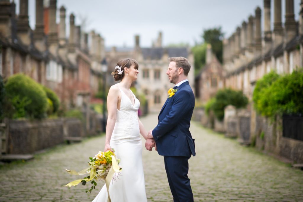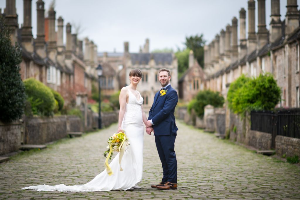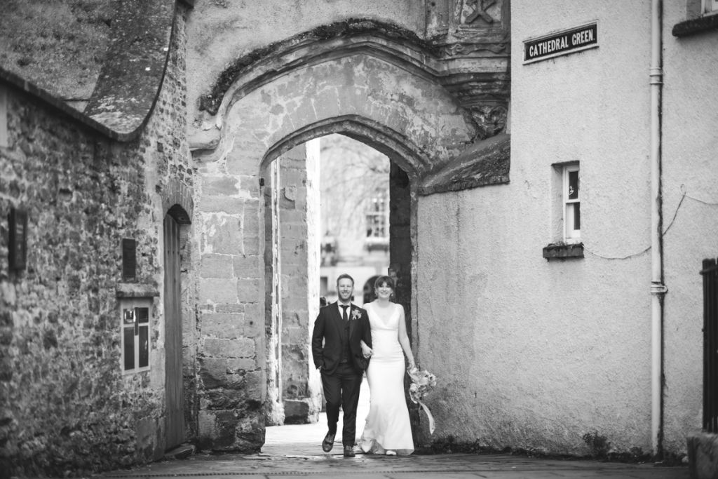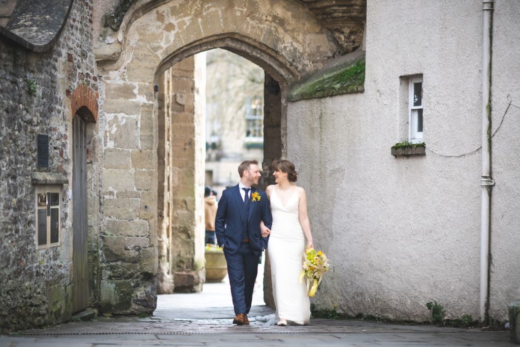 When it came to photographing Oliver and Emma around Wells, I couldn’t resist a trip to Bishops Close, a truly remarkable location familiar to anyone whose ever lived in Wells, and one that makes for stunning Wells wedding photography (once you’ve moved the wheely bins if its recycling day that is!).